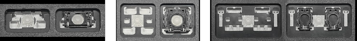 - Bei den meisten Tastaturen, die von außen identisch aussehen, wurden unterschiedliche Arten von Scharnieren unter den Tasten verwendet.