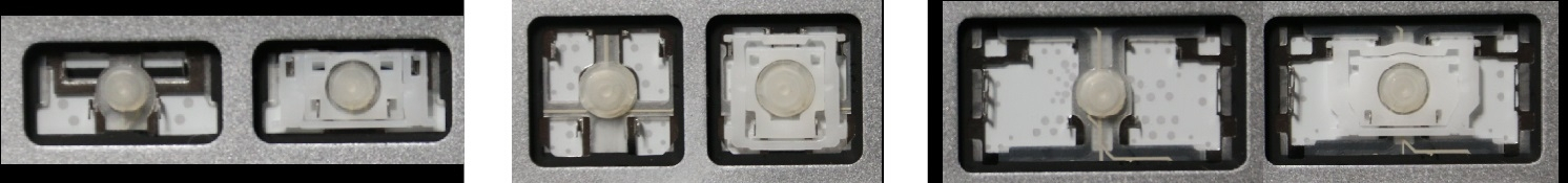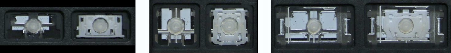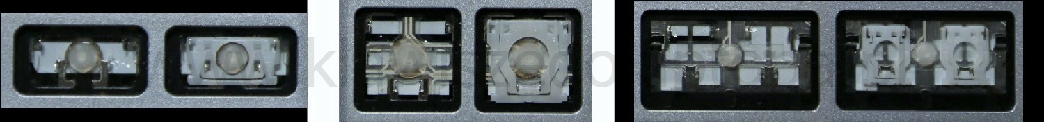 - Bei den meisten Tastaturen, die von außen identisch aussehen, wurden unterschiedliche Arten von Scharnieren unter den Tasten verwendet.