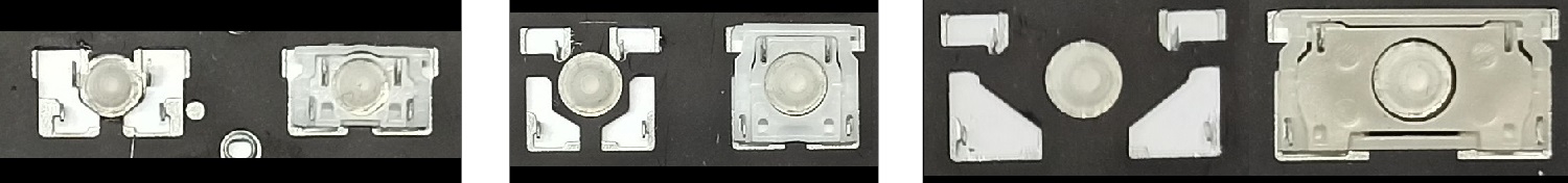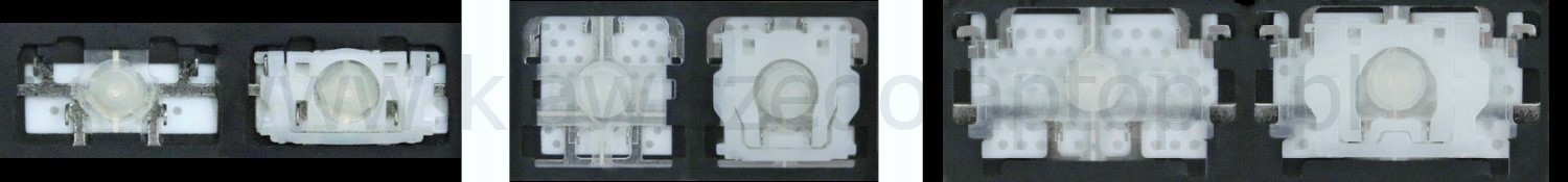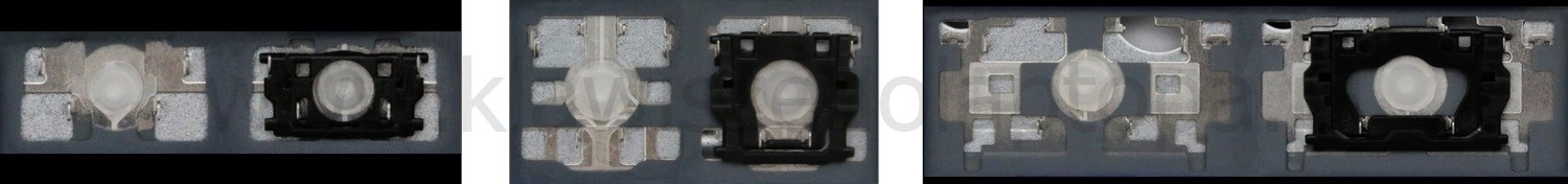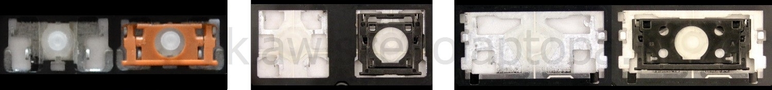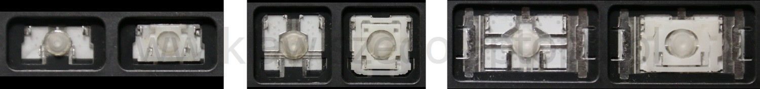 - Bei den meisten Tastaturen, die von außen identisch aussehen, wurden unterschiedliche Arten von Scharnieren unter den Tasten verwendet.