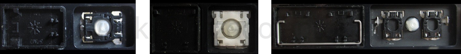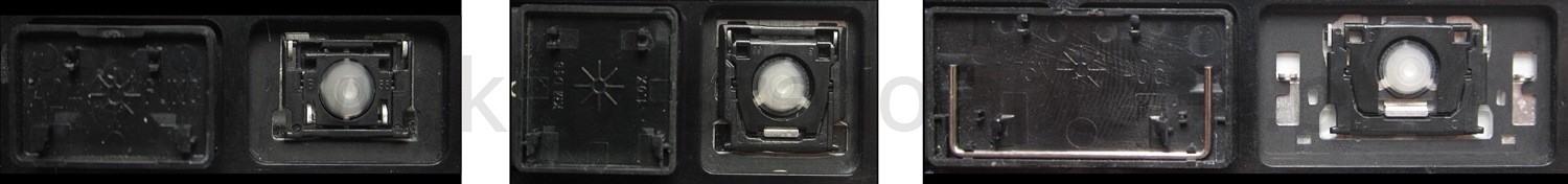 - Bei den meisten Tastaturen, die von außen identisch aussehen, wurden unterschiedliche Arten von Scharnieren unter den Tasten verwendet.