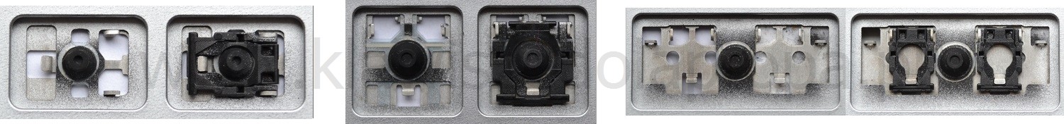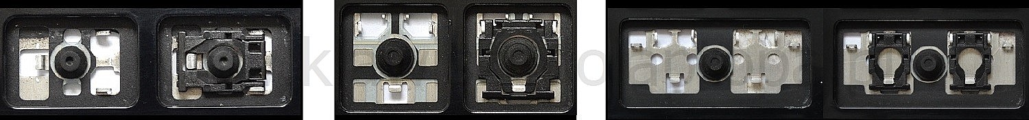 - Bei den meisten Tastaturen, die von außen identisch aussehen, wurden unterschiedliche Arten von Scharnieren unter den Tasten verwendet.