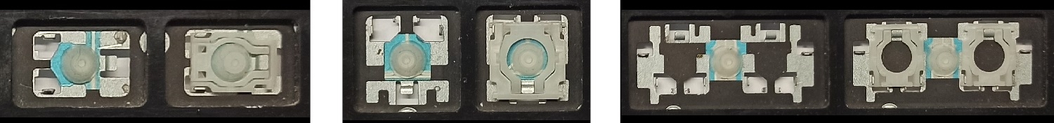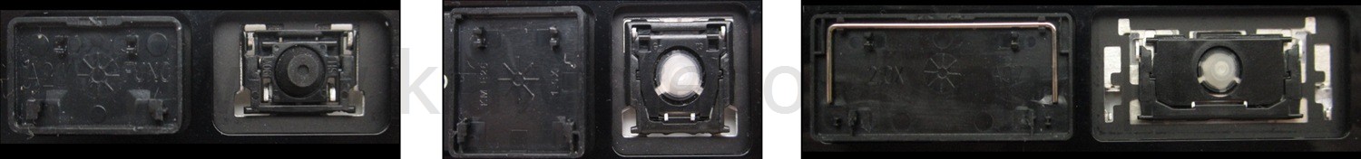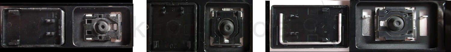 - Bei den meisten Tastaturen, die von außen identisch aussehen, wurden unterschiedliche Arten von Scharnieren unter den Tasten verwendet.