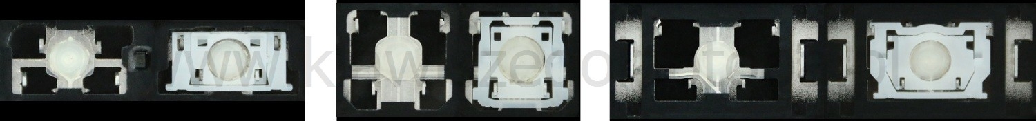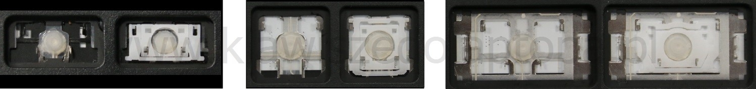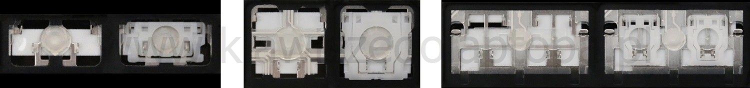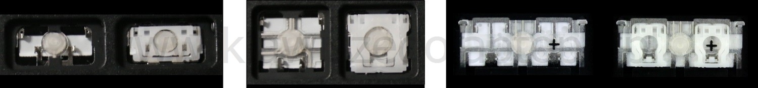 - Bei den meisten Tastaturen, die von außen identisch aussehen, wurden unterschiedliche Arten von Scharnieren unter den Tasten verwendet.