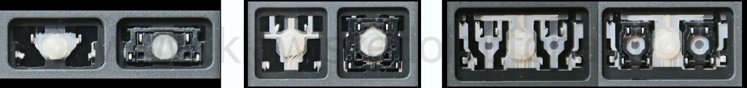- Bei den meisten Tastaturen, die von außen identisch aussehen, wurden unterschiedliche Arten von Scharnieren unter den Tasten verwendet.