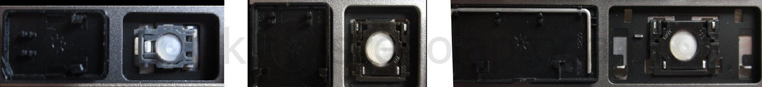 - Um das richtige Modell auszuwählen, vergleiche die freie Stelle auf deiner Tastatur mit den Abbildungen unten oder entferne die Taste „A“ – darunter befindet sich immer ein mittleres Scharnier.