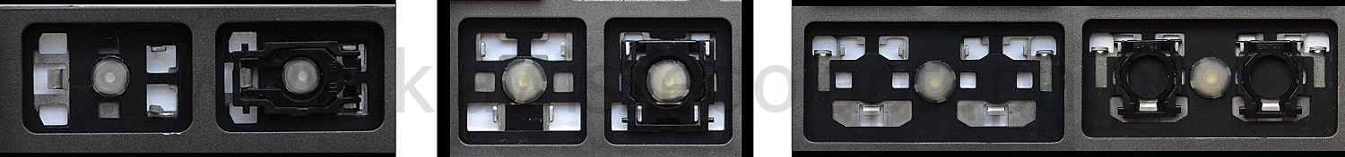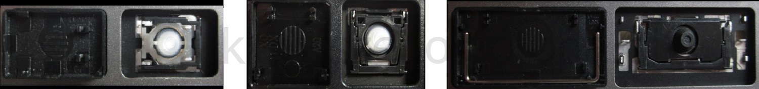 - Bei den meisten Tastaturen, die von außen identisch aussehen, wurden unterschiedliche Arten von Scharnieren unter den Tasten verwendet.