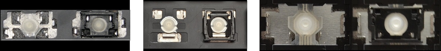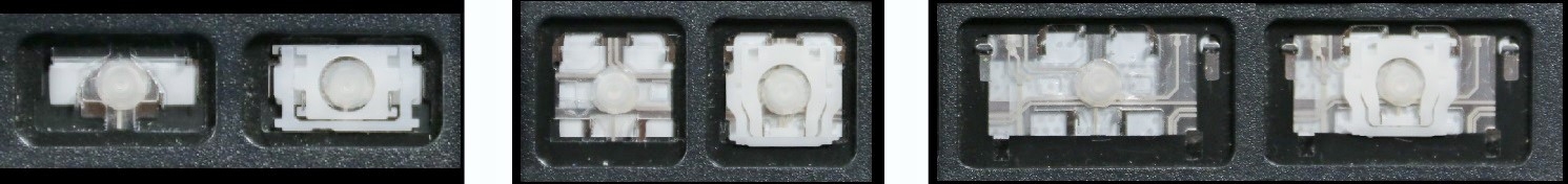 - Bei den meisten Tastaturen, die von außen identisch aussehen, wurden unterschiedliche Arten von Scharnieren unter den Tasten verwendet.