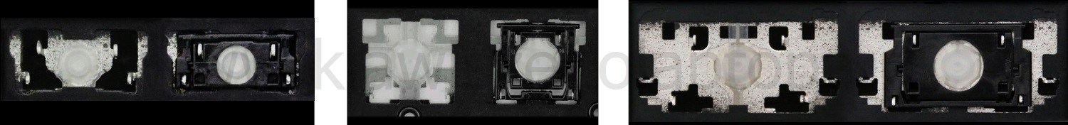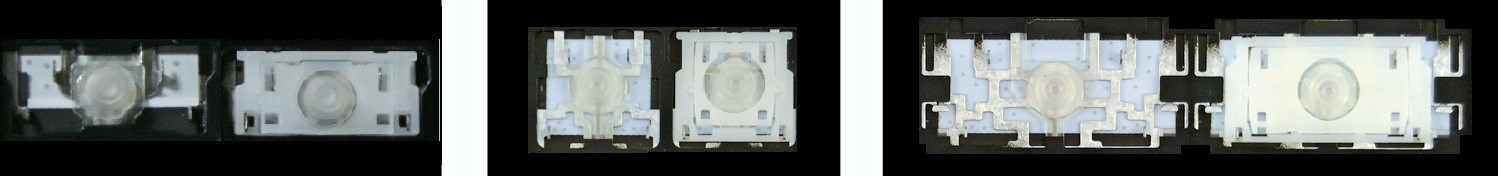 - Bei den meisten Tastaturen, die von außen identisch aussehen, wurden unterschiedliche Arten von Scharnieren unter den Tasten verwendet.