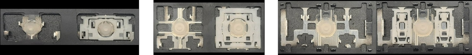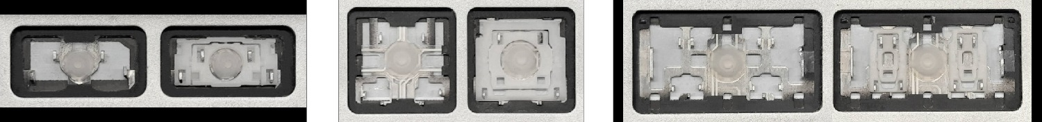 - Bei den meisten Tastaturen, die von außen identisch aussehen, wurden unterschiedliche Arten von Scharnieren unter den Tasten verwendet.