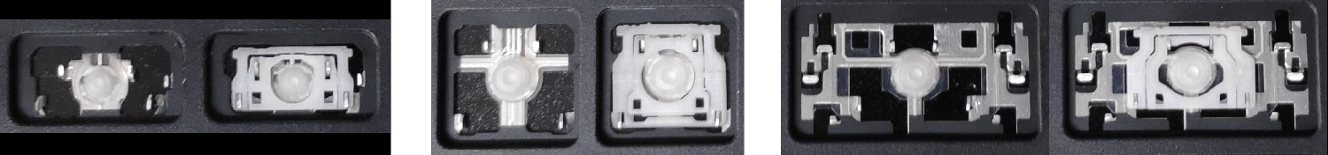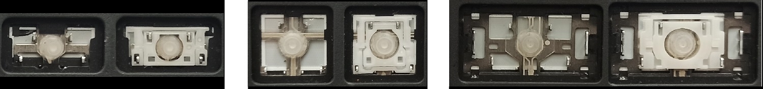- Bei den meisten Tastaturen, die von außen identisch aussehen, wurden unterschiedliche Arten von Scharnieren unter den Tasten verwendet.