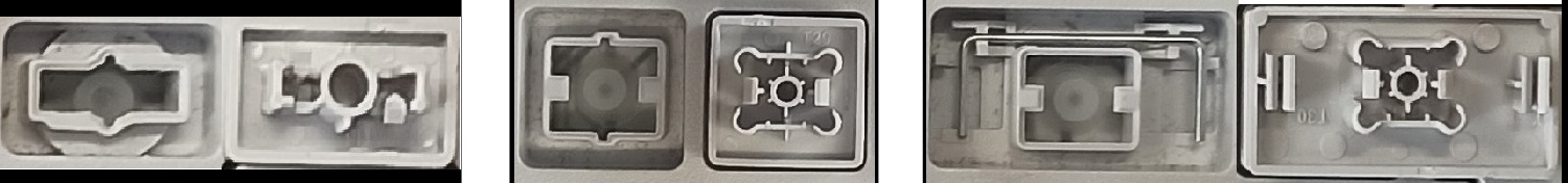 - Bei den meisten Tastaturen, die von außen identisch aussehen, wurden unterschiedliche Arten von Scharnieren unter den Tasten verwendet.