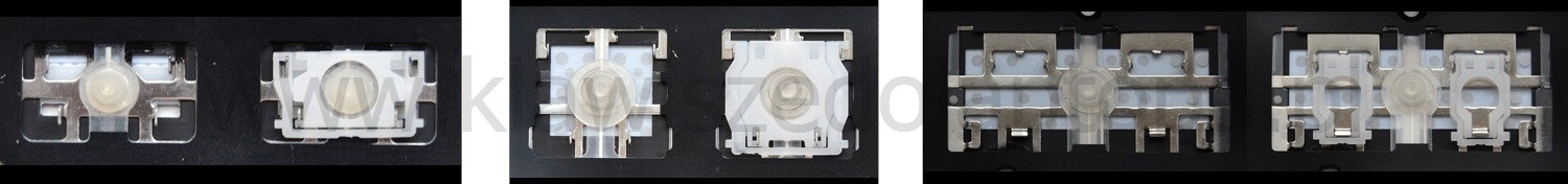 - Bei den meisten Tastaturen, die von außen identisch aussehen, wurden unterschiedliche Arten von Scharnieren unter den Tasten verwendet.