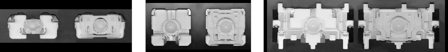 - Bei den meisten Tastaturen, die von außen identisch aussehen, wurden unterschiedliche Arten von Scharnieren unter den Tasten verwendet.