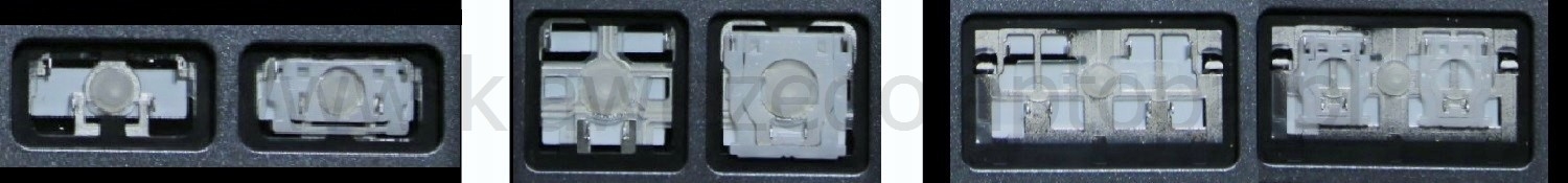 - Bei den meisten Tastaturen, die von außen identisch aussehen, wurden unterschiedliche Arten von Scharnieren unter den Tasten verwendet.