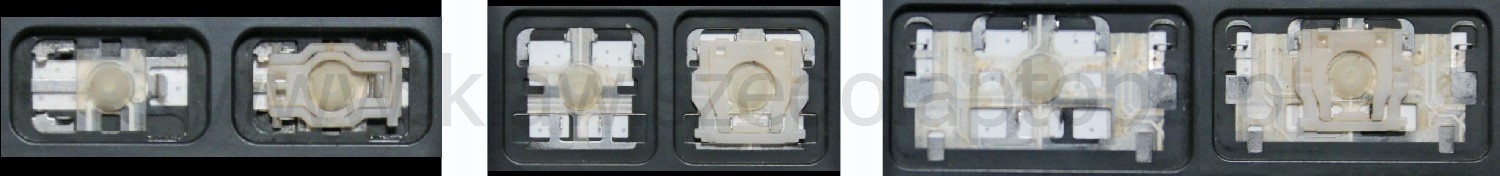 - Bei den meisten Tastaturen, die von außen identisch aussehen, wurden unterschiedliche Arten von Scharnieren unter den Tasten verwendet.