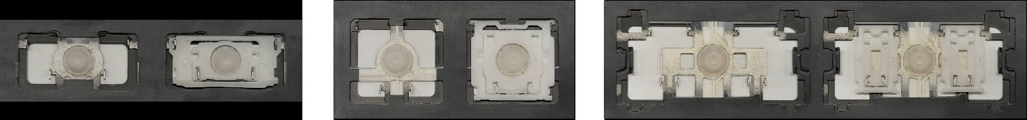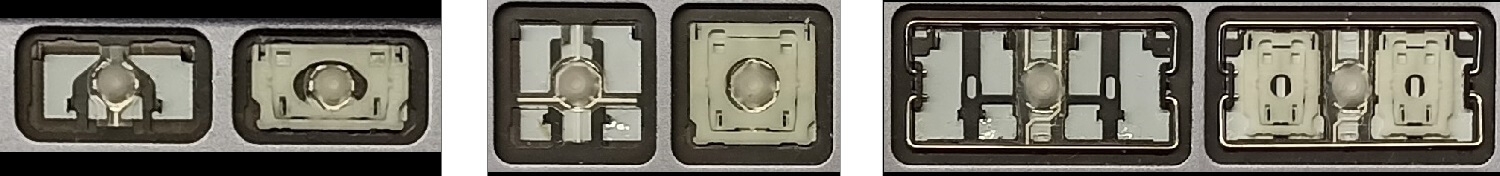 - Bei den meisten Tastaturen, die von außen identisch aussehen, wurden unterschiedliche Arten von Scharnieren unter den Tasten verwendet.