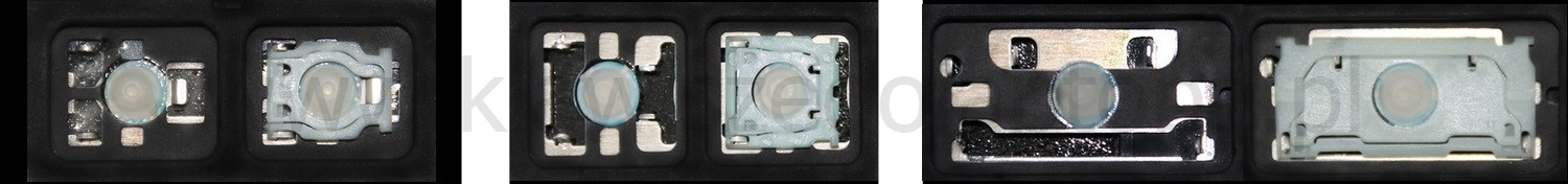 - Bei den meisten Tastaturen, die von außen identisch aussehen, wurden unterschiedliche Arten von Scharnieren unter den Tasten verwendet.