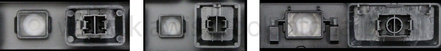 - Bei den meisten Tastaturen, die von außen identisch aussehen, wurden unterschiedliche Arten von Scharnieren unter den Tasten verwendet.