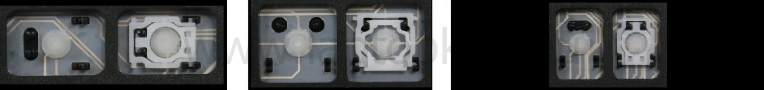 - Bei den meisten Tastaturen, die von außen identisch aussehen, wurden unterschiedliche Arten von Scharnieren unter den Tasten verwendet.
