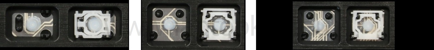 - Bei den meisten Tastaturen, die von außen identisch aussehen, wurden unterschiedliche Arten von Scharnieren unter den Tasten verwendet.