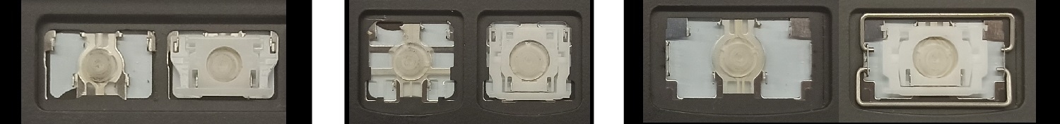 - Bei den meisten Tastaturen, die von außen identisch aussehen, wurden unterschiedliche Arten von Scharnieren unter den Tasten verwendet.