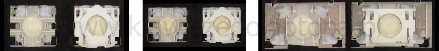 - Bei den meisten Tastaturen, die von außen identisch aussehen, wurden unterschiedliche Arten von Scharnieren unter den Tasten verwendet.