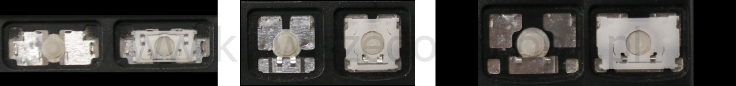 - Bei den meisten Tastaturen, die von außen identisch aussehen, wurden unterschiedliche Arten von Scharnieren unter den Tasten verwendet.