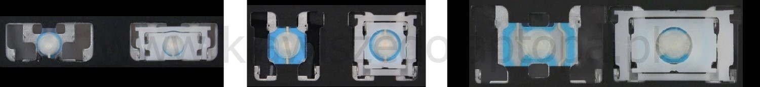 - Bei den meisten Tastaturen, die von außen identisch aussehen, wurden unterschiedliche Arten von Scharnieren unter den Tasten verwendet.
