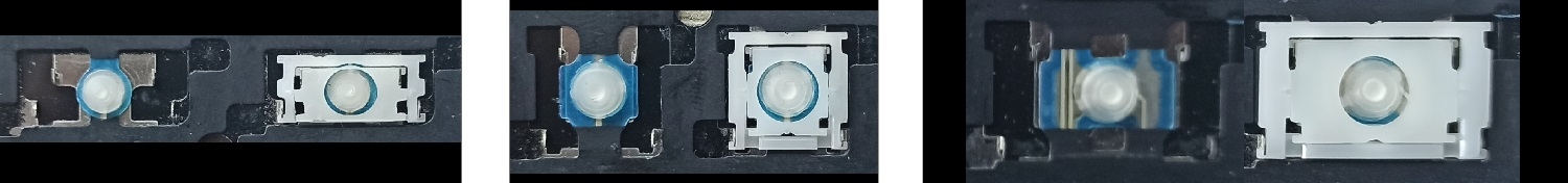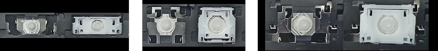 - Bei den meisten Tastaturen, die von außen identisch aussehen, wurden unterschiedliche Arten von Scharnieren unter den Tasten verwendet.