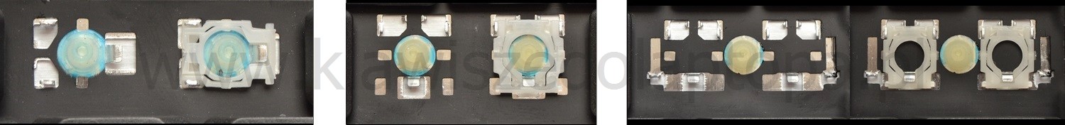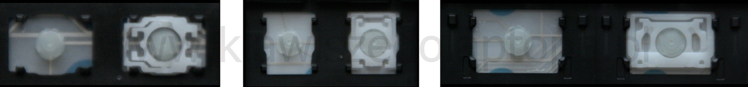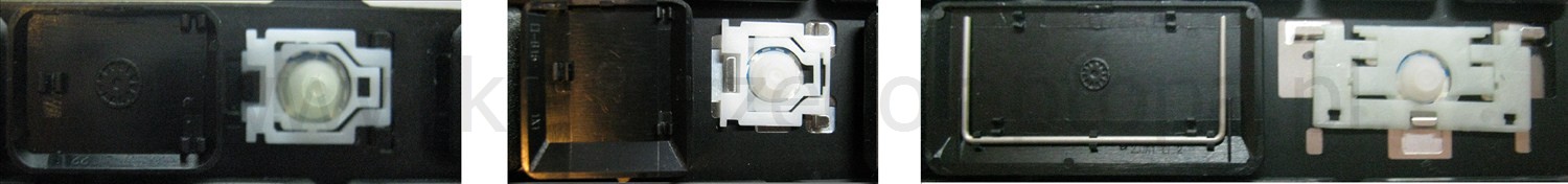 - Bei den meisten Tastaturen, die von außen identisch aussehen, wurden unterschiedliche Arten von Scharnieren unter den Tasten verwendet.