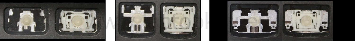 - Bei den meisten Tastaturen, die von außen identisch aussehen, wurden unterschiedliche Arten von Scharnieren unter den Tasten verwendet.