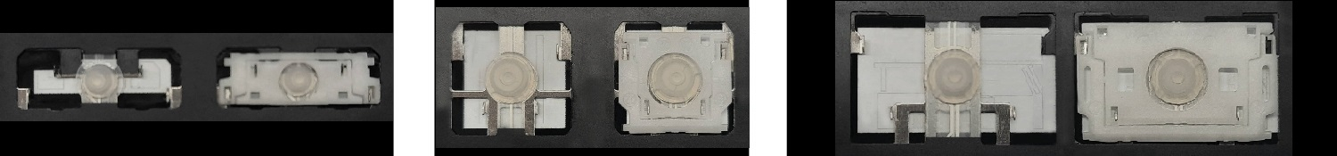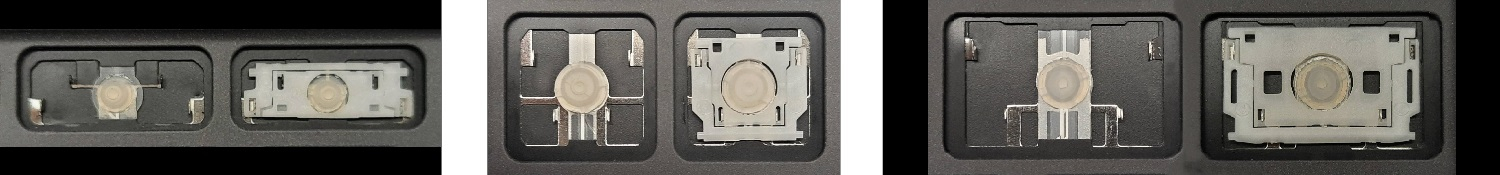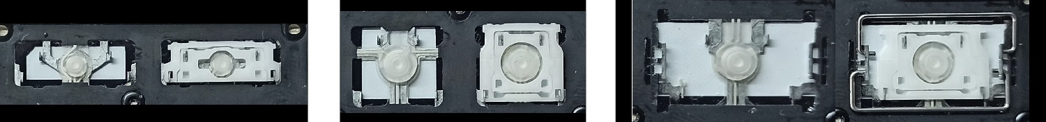 - Bei den meisten Tastaturen, die von außen identisch aussehen, wurden unterschiedliche Arten von Scharnieren unter den Tasten verwendet.