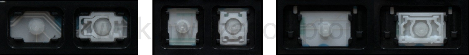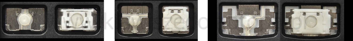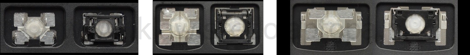 - Bei den meisten Tastaturen, die von außen identisch aussehen, wurden unterschiedliche Arten von Scharnieren unter den Tasten verwendet.