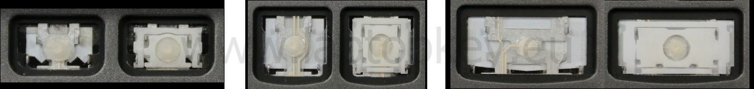 - Bei den meisten Tastaturen, die von außen identisch aussehen, wurden unterschiedliche Arten von Scharnieren unter den Tasten verwendet.