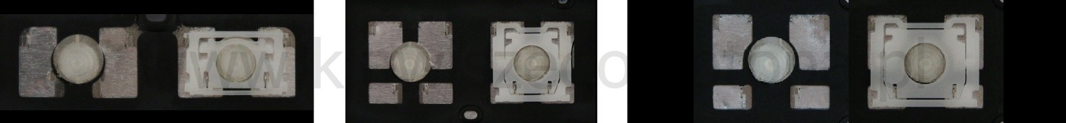 - Bei den meisten Tastaturen, die von außen identisch aussehen, wurden unterschiedliche Arten von Scharnieren unter den Tasten verwendet.