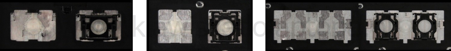 - Bei den meisten Tastaturen, die von außen identisch aussehen, wurden unterschiedliche Arten von Scharnieren unter den Tasten verwendet.