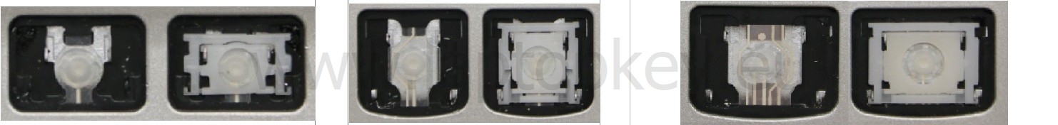 - Bei den meisten Tastaturen, die von außen identisch aussehen, wurden unterschiedliche Arten von Scharnieren unter den Tasten verwendet.