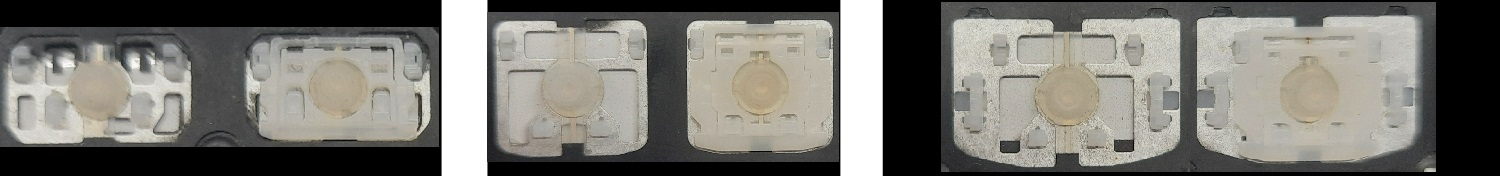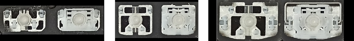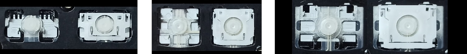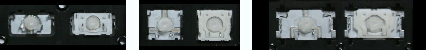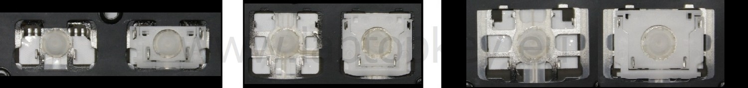 - Bei den meisten Tastaturen, die von außen identisch aussehen, wurden unterschiedliche Arten von Scharnieren unter den Tasten verwendet.