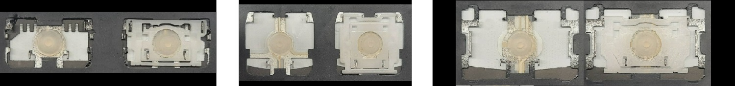 - Bei den meisten Tastaturen, die von außen identisch aussehen, wurden unterschiedliche Arten von Scharnieren unter den Tasten verwendet.