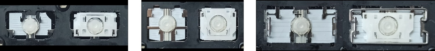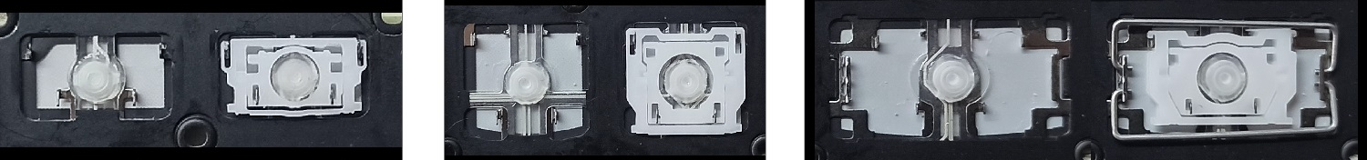 - Bei den meisten Tastaturen, die von außen identisch aussehen, wurden unterschiedliche Arten von Scharnieren unter den Tasten verwendet.