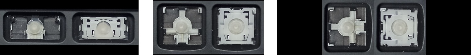 - Bei den meisten Tastaturen, die von außen identisch aussehen, wurden unterschiedliche Arten von Scharnieren unter den Tasten verwendet.