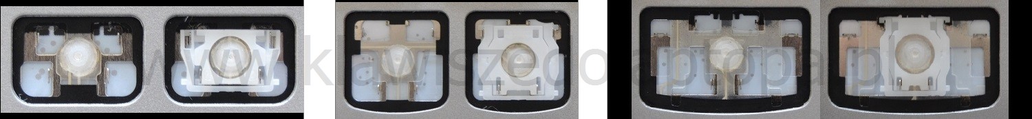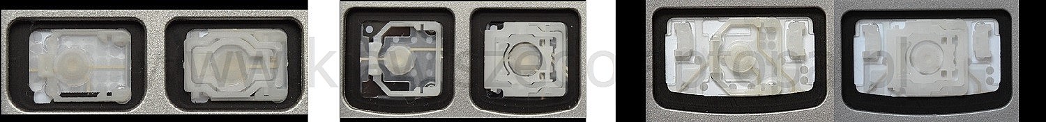 - Bei den meisten Tastaturen, die von außen identisch aussehen, wurden unterschiedliche Arten von Scharnieren unter den Tasten verwendet.