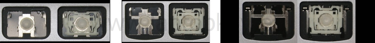 - Bei den meisten Tastaturen, die von außen identisch aussehen, wurden unterschiedliche Arten von Scharnieren unter den Tasten verwendet.