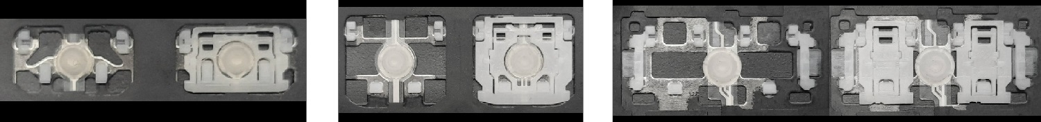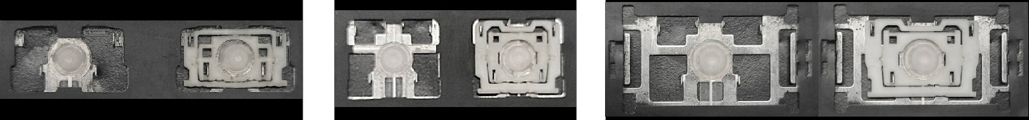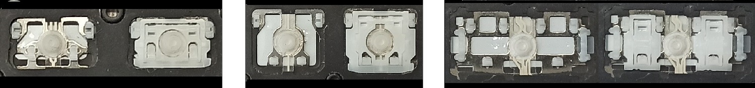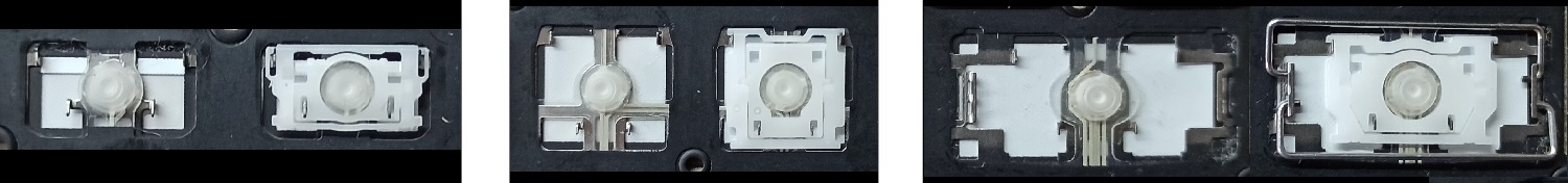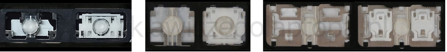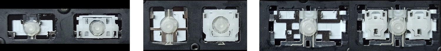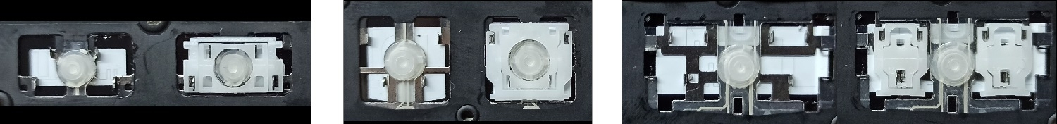 - Bei den meisten Tastaturen, die von außen identisch aussehen, wurden unterschiedliche Arten von Scharnieren unter den Tasten verwendet.