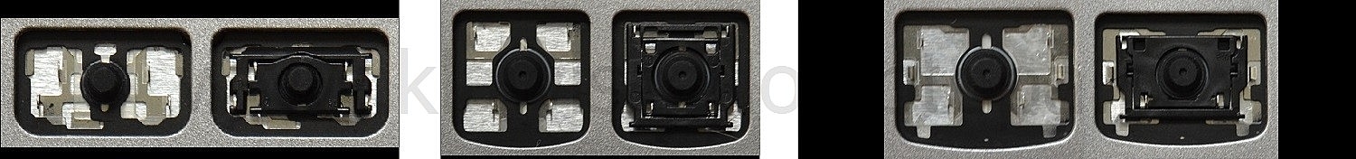 - Bei den meisten Tastaturen, die von außen identisch aussehen, wurden unterschiedliche Arten von Scharnieren unter den Tasten verwendet.
