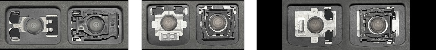 - Bei den meisten Tastaturen, die von außen identisch aussehen, wurden unterschiedliche Arten von Scharnieren unter den Tasten verwendet.