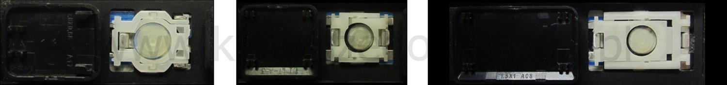 - Bei den meisten Tastaturen, die von außen identisch aussehen, wurden unterschiedliche Arten von Scharnieren unter den Tasten verwendet.