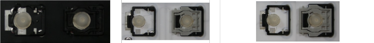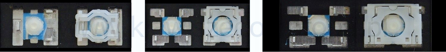 - Bei den meisten Tastaturen, die von außen identisch aussehen, wurden unterschiedliche Arten von Scharnieren unter den Tasten verwendet.