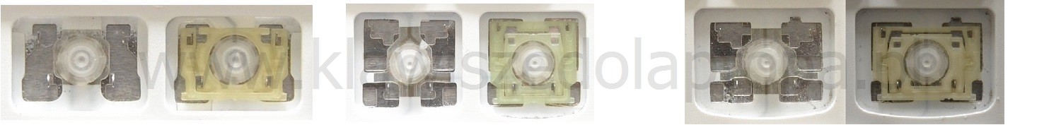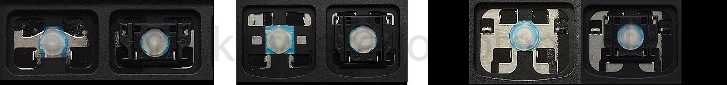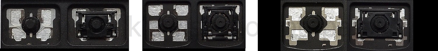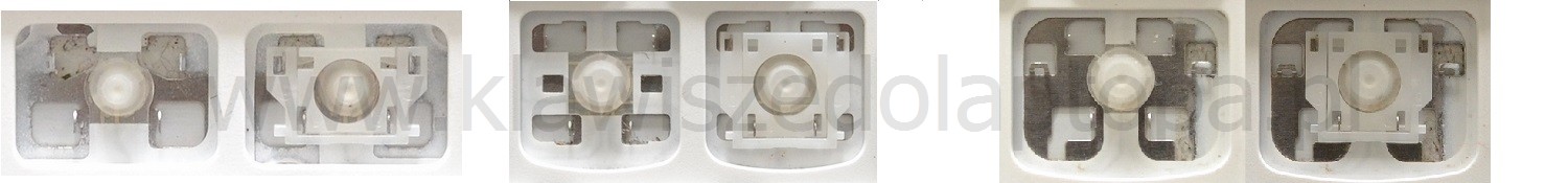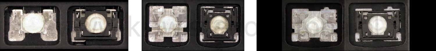- Bei den meisten Tastaturen, die von außen identisch aussehen, wurden unterschiedliche Arten von Scharnieren unter den Tasten verwendet.