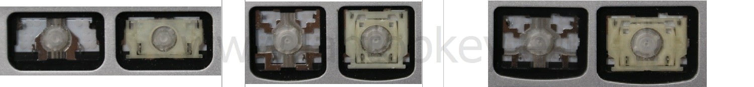 - Bei den meisten Tastaturen, die von außen identisch aussehen, wurden unterschiedliche Arten von Scharnieren unter den Tasten verwendet.